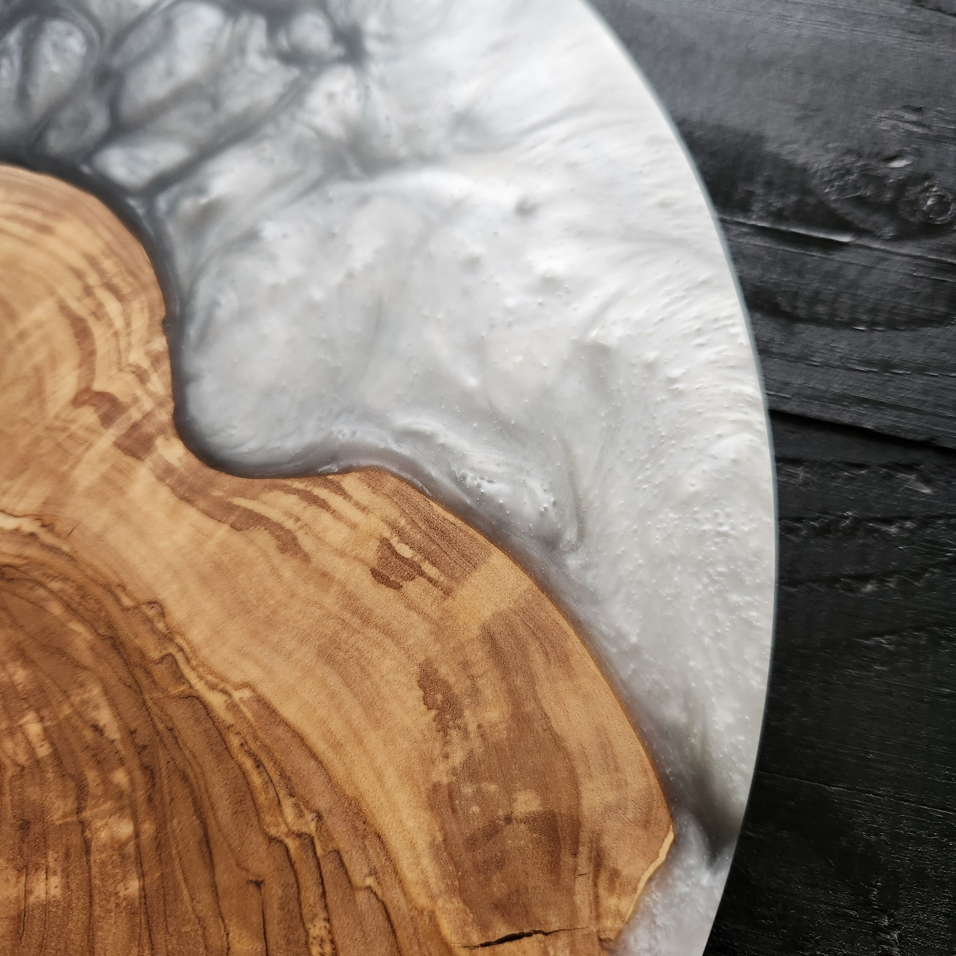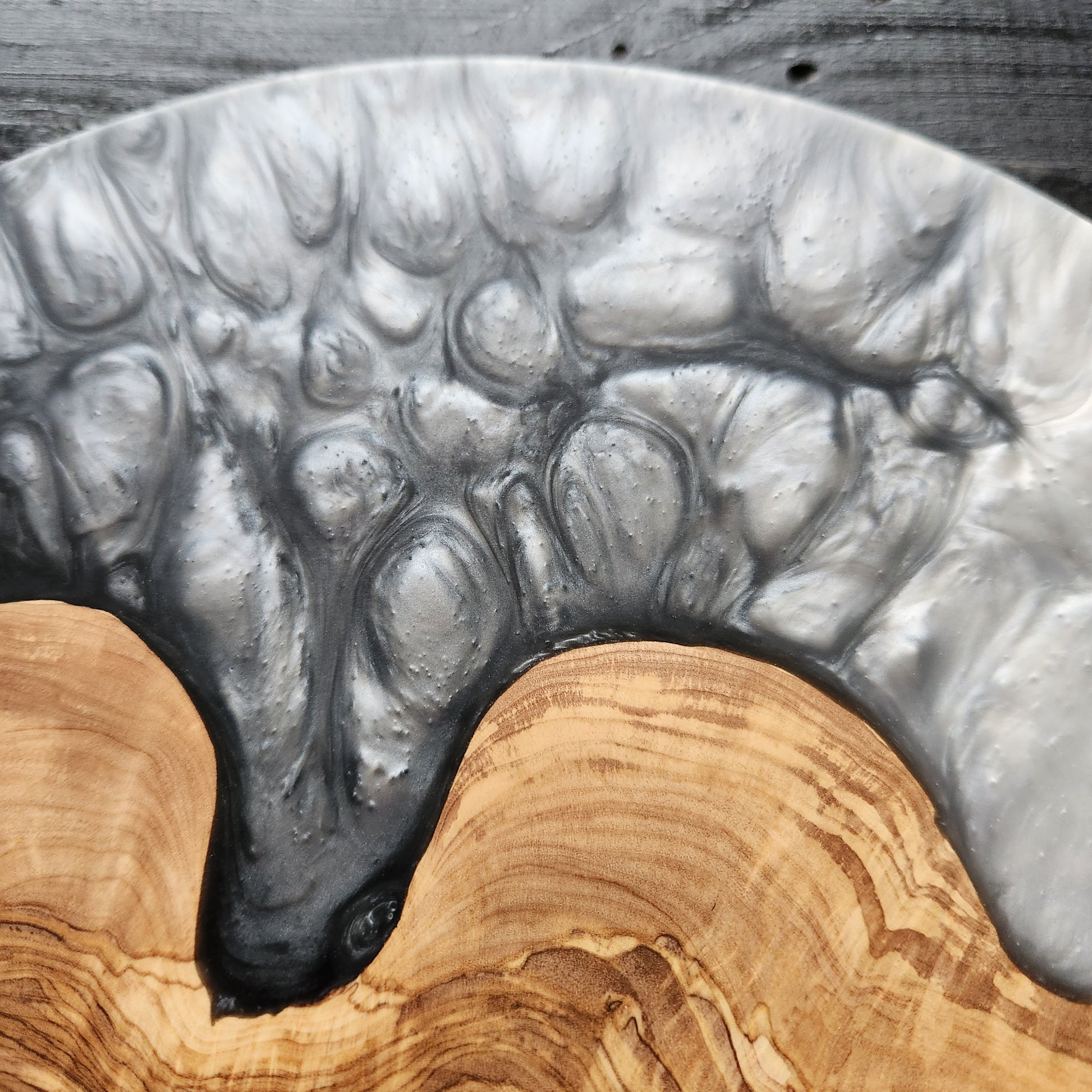 Graphite Eclipse – Handmade Olive Wood & Epoxy Resin Round Serving Board