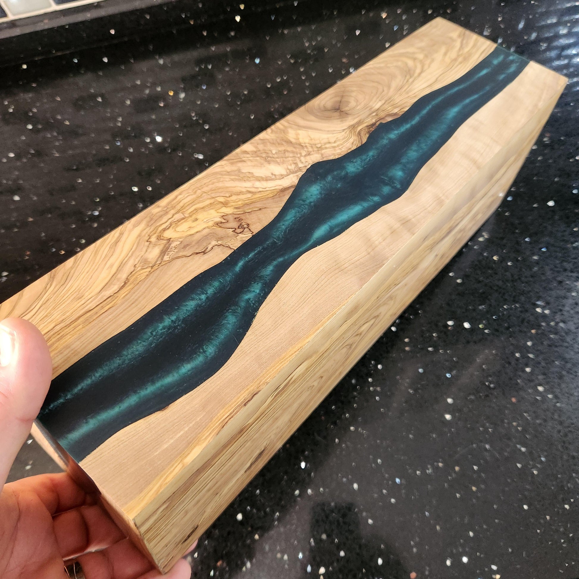 Olive wood and epoxy resin, finished with food-safe hardtop oil.